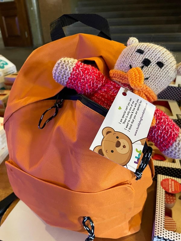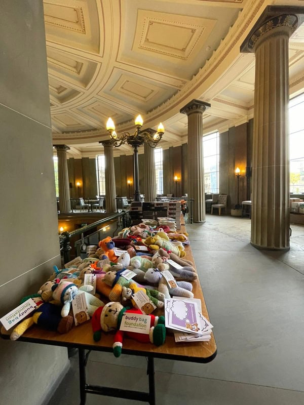 The iconic surroundings of St George’s Hall provided a beautiful backdrop, while the Buddy Bag Brigade packed bags with toiletries, pyjamas, books, toys and a soft teddy – hand-knitted by generous volunteers from across the UK.
