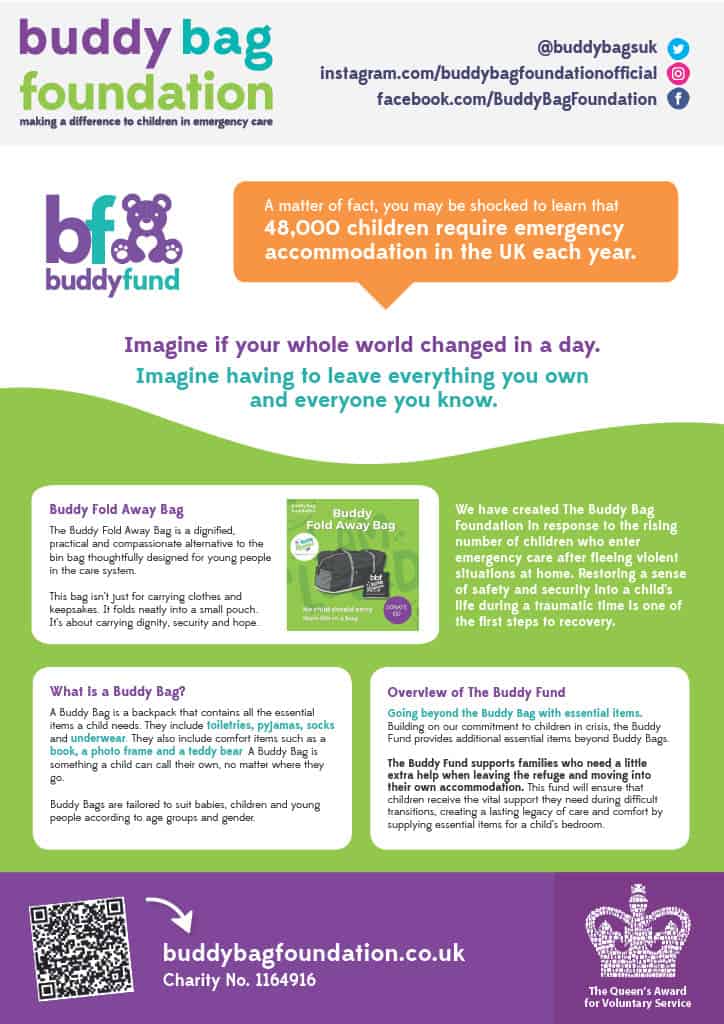 Marcus Hulme, Director of Places Impact at Places for People commented: “We are proud to have been working closely with Buddy Bag Foundation and have seen first-hand the positive impact these backpacks can have on young people entering our emergency care supported accommodation services. The backpacks are vital in helping to restore a feeling of safety and security to a child in these difficult times. Through our independent charity, Places Foundation, we are delighted to be able to support incredible initiatives like the Buddy Bag Foundation with our time and funding.”